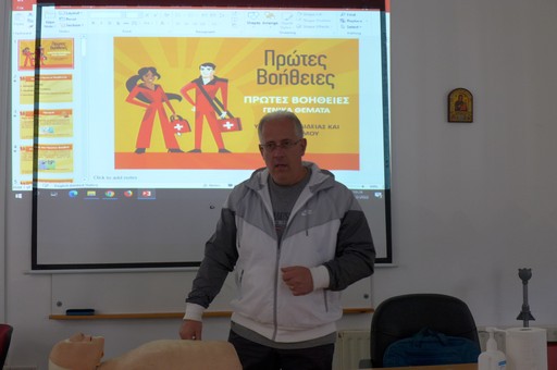 «Πρώτες Βοήθειες» - Ομιλητής ήταν ο Β.Δ. του Σχολείου μας, κ. Γιώργος Αχνιώτης. Μέσα από το σεμινάριο οι εκπαιδευτικοί επιμορφώθηκαν σχετικά με τις ενέργειες που πρέπει να κάνουν σε περίπτωση που χρειαστεί να ανταποκριθούν σε επείγον περιστατικό εντός του σχολικού χώρου παρέχοντας πρώτες βοήθειες.