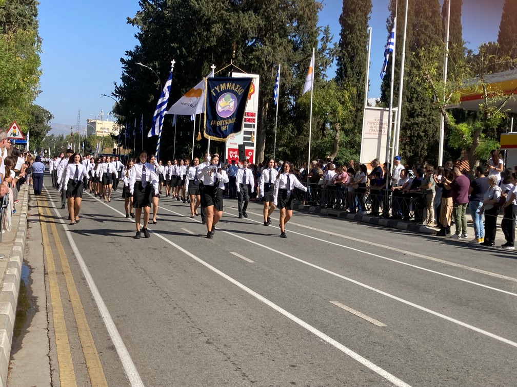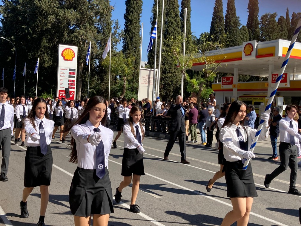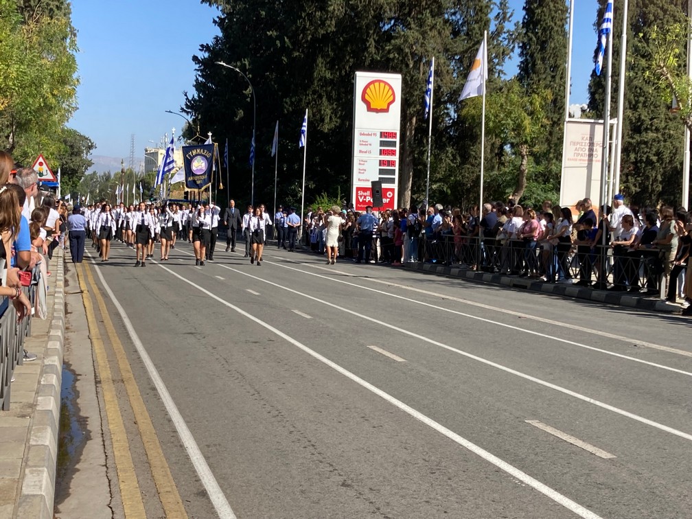 Στο πλαίσιο των εορτασμών της Εθνικής επετείου της 28ης Οκτωβρίου 1940, τελέσθηκε η Δοξολογία στον Καθεδρικό Ναό Αποστόλου Βαρνάβα στη Λευκωσία. Ακολούθησε η μεγάλη μαθητική παρέλαση μπροστά από την Πρεσβεία της Ελλάδος. Μαθητές και μαθήτριες του Γυμνασίου μας, εκπροσώπησαν επάξια το Σχολείο, συνοδευόμενοι από τον κ. Λουκιανό Κυριακίδη, Καθηγητή Φυσικής Αγωγής.