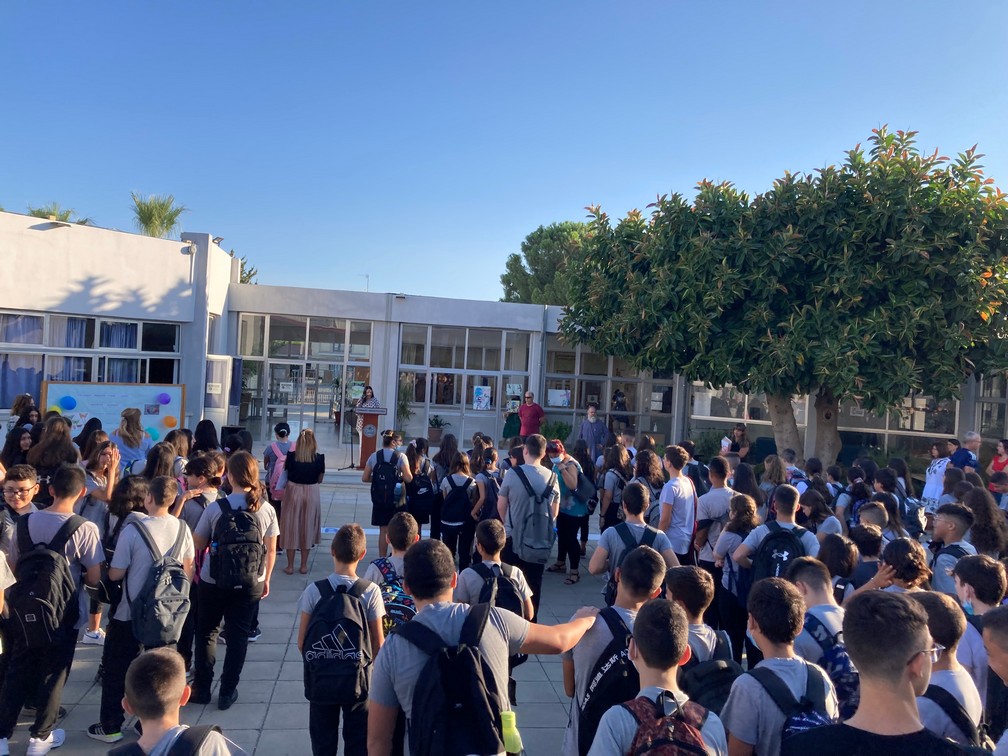 Την πρώτη μέρα προσέλευσης των μαθητών/ τριών στο σχολείο έγινε το καλωσόρισμά τους από τη Διευθύντρια σε κοινή συγκέντρωση και η κατανομή τους σε τμήματα. Στη συνέχεια πραγματοποιήθηκε η διανομή των βιβλίων και δόθηκαν στους μαθητές/ τριες οι πρώτες κατευθυντήριες γραμμές από τους υπεύθυνους τμημάτων.